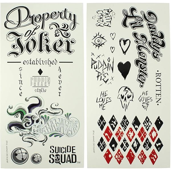 Amazon Com Dc Comics Suicide Squad Harley Quinn Joker Temporary Tattoos Beauty Personal Care